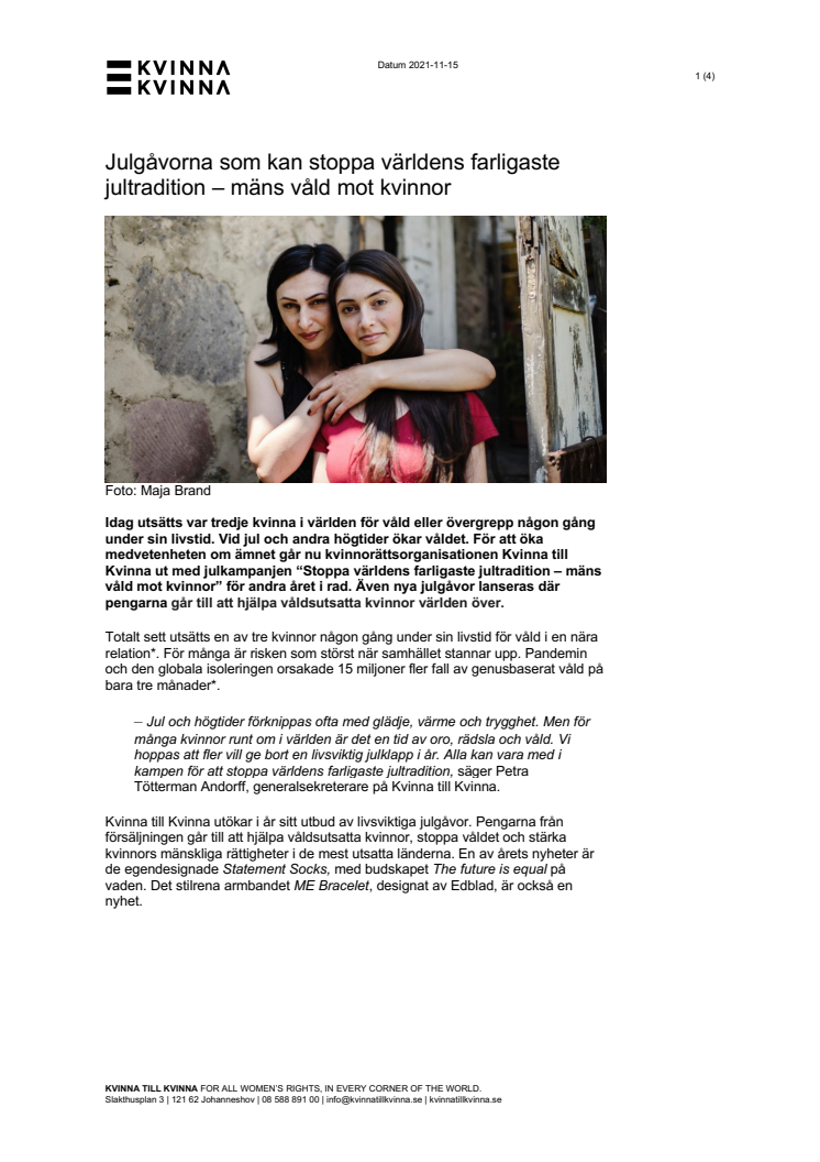 Pressrelease Kvinna till Kvinna - Julgåvorna som kan stoppa världens farligaste jultradition – mäns våld mot kvinnor.pdf
