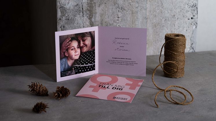 Skicka ett digitalt gåvokort till någon du inte kan träffa i jul – eller lägg ett tryckt gåvokort under granen. Samtidigt bidrar du med hela summan till Kvinna till Kvinnas arbete för kvinnors rättigheter.